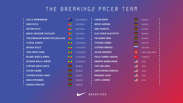 May 05, 2017 Unpacking the Breaking2 Race Strategy These are the pacing and fueling techniques that will help to guide Lelisa Desisa, Eliud Kipchoge and Zersenay Tadese to the first-ever sub-two-hour marathon finish. Share Image An electric car informs key information In this attempt, pace is everything. To help Kipchoge, Desisa and Tadese remain aware of the pace they need to maintain to hit their 1:59:59 target, an electric car (that won’t blast the athletes with exhaust) will drive about six meters ahead of the pack, showing the race pace, the amount of time that has passed and the projected marathon finish time. “This is typical of most road races, but the Breaking2 lead car will update this info every 200 meters whereas other races typically update these stats every kilometer or 5K,” says Dr. Brett Kirby, researcher and lead physiologist of the Nike Sport Research Lab. Pacers will help the runners keep record time To break the two-hour barrier, the athletes can’t afford to go a second slower than they need to. That’s why a team of 30 pacers (made up of some of the world’s best distance runners, including Bernard Lagat) will aid the runners to a sub-two-hour race finish by running to help them maintain a steady race pace and by creating a wind divergence. Athletes were invited to join the pacer crew based on their running capabilities and temperament. “We needed calm, steady pace runners who can run the same speed repeatedly,” says Dr. Brad Wilkins, a physiologist and the director of Nike Explore Team Generation Research in the Nike Sport Research Lab who works with Kirby on all things Breaking2 science. Share Image Of the 30 athletes, 18 pacers will be reserved for the lead runner while six pacers will be reserved for the lead running group and six for the second running group. Only six pacers will be on the course at one time for the lead group and they will run in a triangle formation. The three athletes (represented by the black dots) and six pacers (the red and blue dots) will line up together at the start and quickly fall into formation. Share Image “We landed on the pacer formation based on wind tunnel experiments performed in fall 2016 by Nike Sports Research Lab at the University of New Hampshire wind tunnel and our collaboration with Winning Algorithms,” explains Kirby. “Coupled with computational fluid dynamics (for example, aerodynamics modeling), we chose the best formation of pacers to block the wind.” Each pacer will cover two laps (having them run any longer than that may create pacer variation or elicit fatigue, which could make them less steady and more prone to tripping) and then make an exchange (at about 4.8 kilometers). Only three pacers will be entering or exiting the exchange zone at one time. The formation is complicated. “It’s a choreographed change-in that has to happen without us losing a second of speed,” says Kirby. A pacer exchange will happen every lap. Once the runners cross the exchange start line, the three runners who will have just finished their second lap (represented by the red dots) will exit. The three pacers who will have just run their first lap (blue dots) will move forward to begin their second lap, and the three fresh pacers (green dots) settle in in a straight line in the middle to begin their first lap. Share Image Individualized hydration will energize each athlete Kipchoge, Desisa and Tadese have a personalized race-day hydration strategy that will help them offset fluid losses from sweating and maintain ideal cardiovascular performance needed to keep their record-breaking pace. At each lap (every 2.4 kilometers) a moped handoff will deliver their specific bottles (if an athlete drops back, a table attendant will pass the fluid off to him) that contain a customized carbohydrate fluid mixture. There are 17 fluid bottles containing between 60 to 100ml for each athlete. Twelve to 14 of each of their bottles will contain a standardized drink. Three to five of each athlete’s batch will have a specialized mixture. “The total fluid volume in each of the special bottles is different from the others and they will have either a higher concentration of sugar or a different type of sugar or a sugar and caffeine combination,” explains Kirby. Watch the live stream to see the action as it unfolds. Find out more on Breaking2 here. Tags nike running nike breaking2 two hour marathon