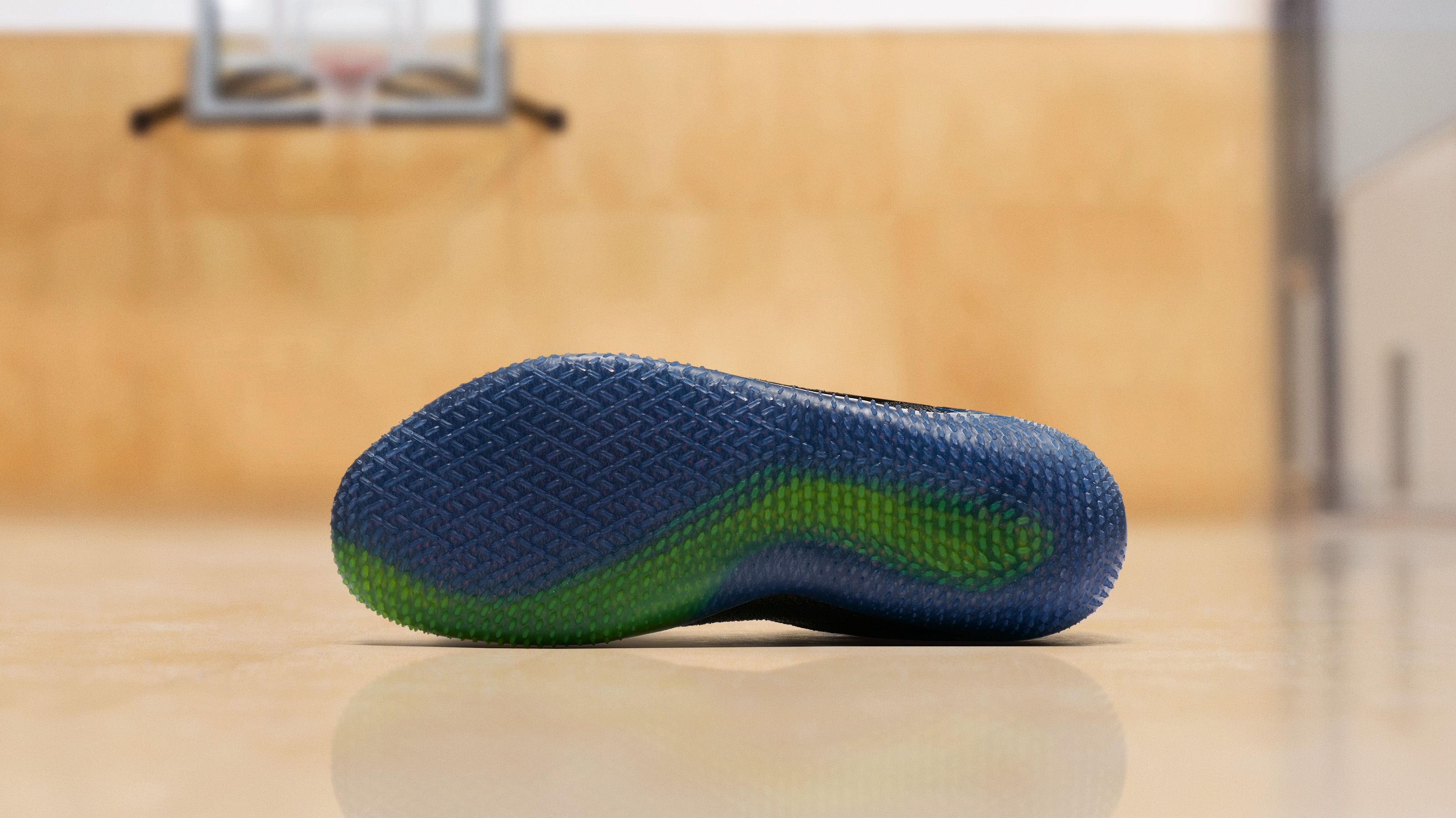 Laser-siped flex grooves in the forefoot maximize natural motion and forefoot flexibility for running and jumping, while minimal siping in the heel creates a stable platform for lifting.