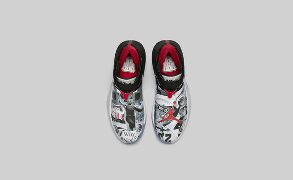 January 03, 2018 First Look: Russell Westbrook’s Signature Performance Shoe, the Jordan Why Not Zer0.1 Share Image Both Russell Westbrook’s playing and personal style have a unique flare. Behind each, there is balance between a meticulous attention to detail and a no fear attitude. That’s because since high school, both on and off court, Westbrook has followed a simple guiding principle: “If I face a challenge, I run at it — not away from it,” he says. That outlook is captured by a personal mantra, “Why Not?” It defines how Westbrook plays, how he dresses and now, especially with his first signature performance shoe, the Jordan Why Not Zer0.1, how he shares his story. “As a kid growing up in LA and standing in line to get other people’s shoes, you become aware of how fortunate you are to get sneakers,” he says. “To be able to sit here now and hold my own shoe is an honor.” Crafted for the dynamic game and personality of the reigning MVP and fashion king, the Jordan Why Not Zer0.1 is highlighted by its smooth vamp, which, fitting for Westbrook, offers dual purpose. First and foremost, it serves the MVP’s key footwear need: forefoot containment. Westbrook plays high on his toes, always ready to push to the hoop or convert a rebound or steal into a fast break. For this, he needs stability over the sole unit, such that no added movement minimizes response when shifting direction or getting maximum bounce to the rack. Combining his style, specific performance needs and Jordan Brand soul, the end result is a futuristic silhouette that features a fused mesh upper, full-length Zoom Air unit and a compression-molded pylon foam piece engineered for flight. Jordan Why Not Zer0.1 "2-Way" Share Image Jordan Why Not Zer0.1 "2-Way" Share Image Jordan Why Not Zer0.1 "2-Way" Share Image Jordan Why Not Zer0.1 "2-Way" Share Image Behind the scenes, Westbrook works closely with Jordan designers and the Thunder equipment manager, Wilson Taylor, to ensure his feedback is clear and concise. “Russ is a detail-oriented guy. He picked up on every little thing [when testing the shoe],” shares Taylor. After every wear test, Taylor is responsible for relaying Westbrook’s thoughts back to the Jordan team. “After each test, he’d share some feedback. He’d tell me ‘see if they can do this. See if they can extend the padding here.’ It was a good process,” he says. That part of the process, the dialing of the fit and feel, is elementary for Westbrook. He wants things comfortable. He wants supreme confidence in his tools, even if it requires getting into the weeds. “The biggest part is the amount of comfort and security the shoe provides,” he says. “It allows me to move and jump at a fast pace, something that I think is very, very important.” Of course, looking good is important too. That’s where the second element of footwear design, adding personal style, comes into play. “My favorite part of the design process is storytelling,” says Westbrook. “Being able to tell my story through colorways and at different times during the season is a lot of fun.” Jordan Why Not Zer0.1 "Mirror Image" Share Image Jordan Why Not Zer0.1 "Mirror Image" Share Image Jordan Why Not Zer0.1 "Mirror Image" Share Image Jordan Why Not Zer0.1 "Mirror Image" Share Image Westbrook will debut a PE version of the Mirror Image colorway on court. This colorway exhibits the pleasure Westbrook derives from sharing a narrative. Its upper is plastered with images referencing a heavily postered room, and shows how sporting icons are celebrated over generations. “Allowing me to have my own shoe is a great opportunity to tell my story, extend my Why Not? motto and explain the whole background behind it,” Westbrook says. The official global launch colorway, 2-Way, perfectly captures both Westbrook’s game-changing presence on both sides of the court and the design’s eye-catching contrast from smooth vamp to jagged heel. Like Westbrook’s playing and off-court looks, this colorway masterfully balances a “Why Not?” approach to style and performance. Westbrook expects to get a lot of reactions out of his shoe. “This shoe is futuristic and something that people will take a double look at,” he says. Why Not? The Why Not Zer0.1 launches January 15 with limited quantities of the Mirror Image colorway. The 2-Way colorway releases February 15 for $125. Tags jordan brand